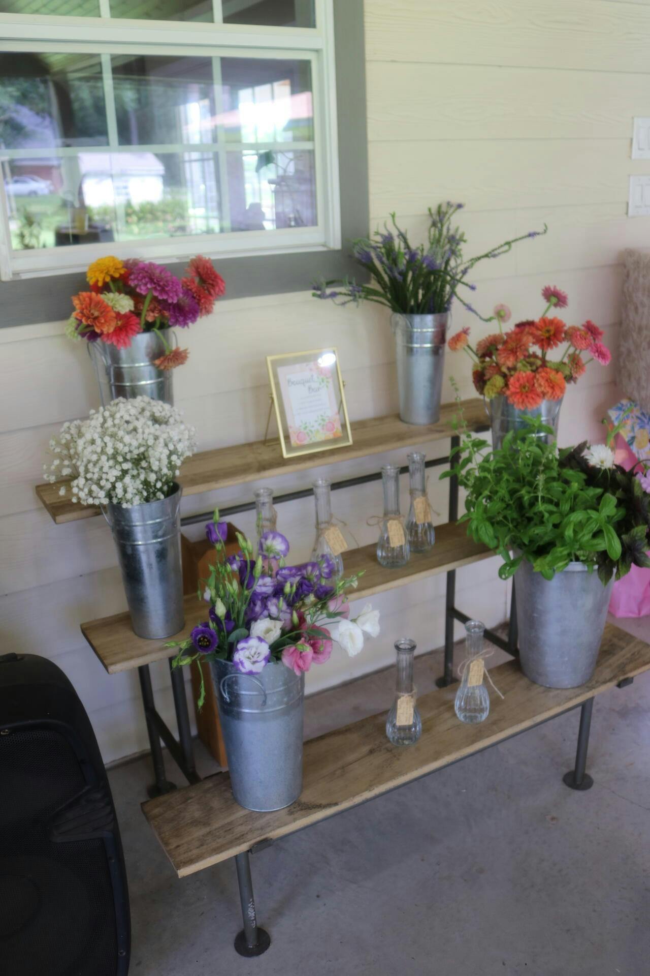**This is for locals only! Flower Bar stand rental, tin vase rental, vases filled with a mix of flowers and filler. Perfect for any event! Your guests can make their own arrangements from locally grown flowers.