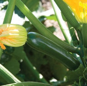 Beautiful dark green zucchini squash with high disease resistance. This is a spinless variety, making harvesting easier. High production rates.